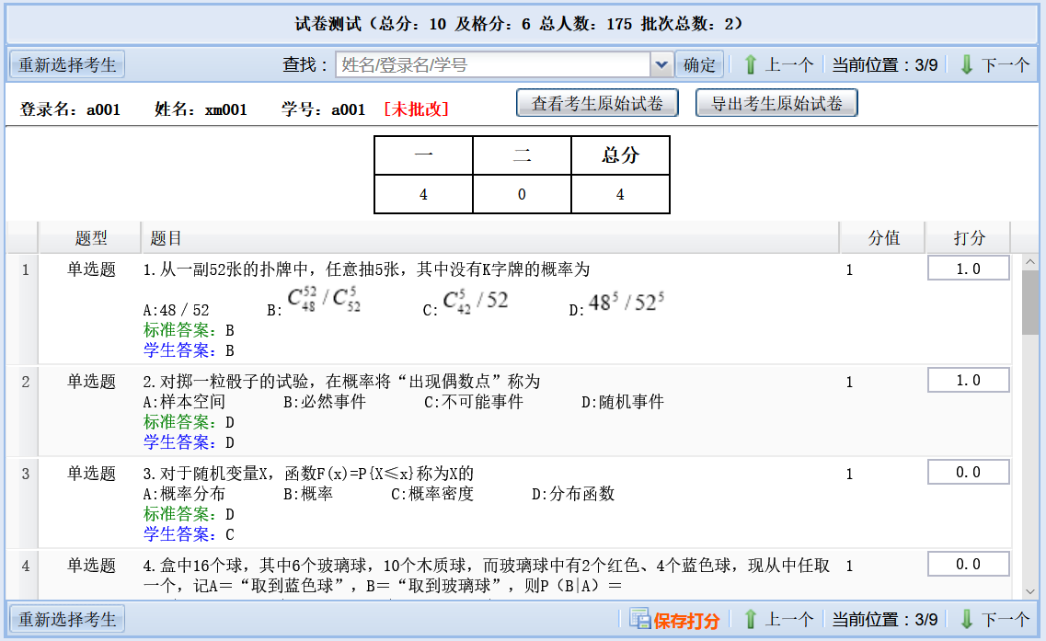 点击主界面上“批改试卷”,选择试卷进行试卷批改。