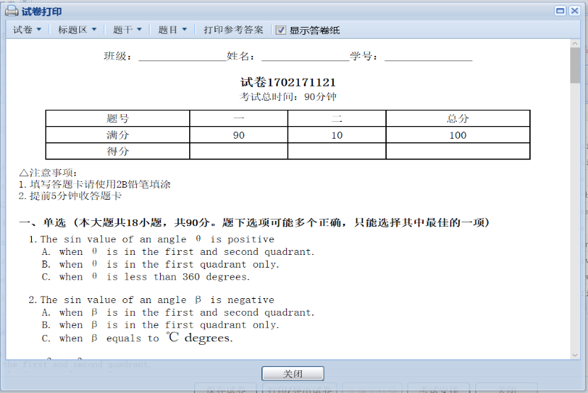调整完试卷后可以使用打印/导出试卷的功能查看最终效果,可以在本界面中对试卷进行打印导出,以及在线排版。