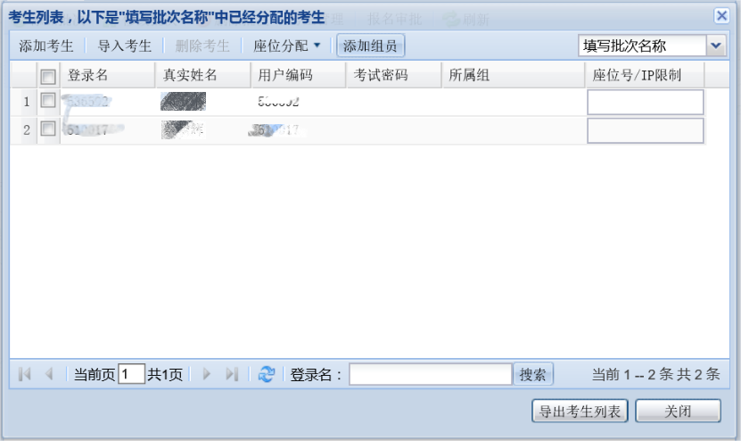 (1) 添加考生:按条件搜索学生,选择学生,添加到考试。